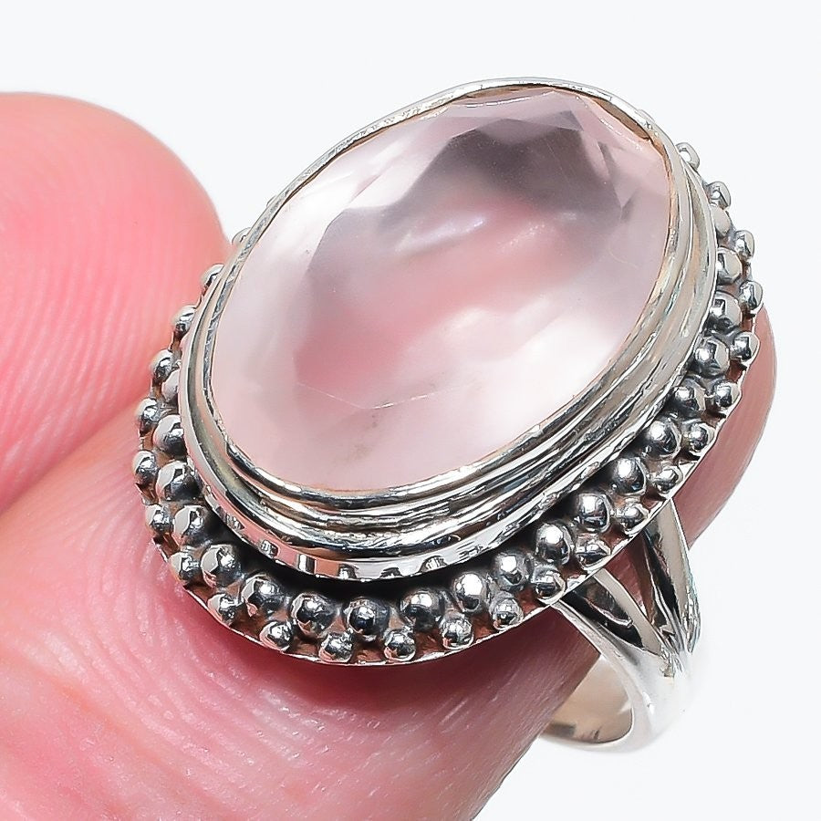 Natural Rose Quartz Solid Sterling Silver Artisan Statement Mother Ring Size 9