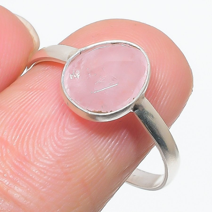 Natural Rose Quartz Solid Sterling Silver Cluster Heart Chakra Wife Ring Size 10