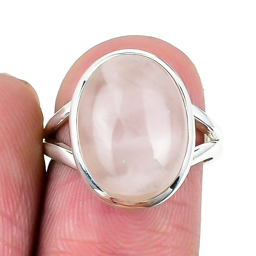 Natural Rose Quartz Solid Sterling Silver Statement Engagement Wife Ring US 7.5