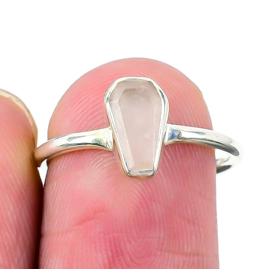 Natural Rose Quartz Statement Mother Wedding New Ring Solid Sterling Silver US 7