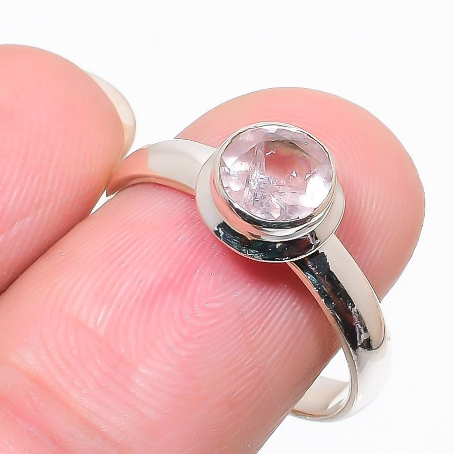 Natural Rose Quartz Sterling Silver Birthday Wife Statement Ring Jewelry US 9