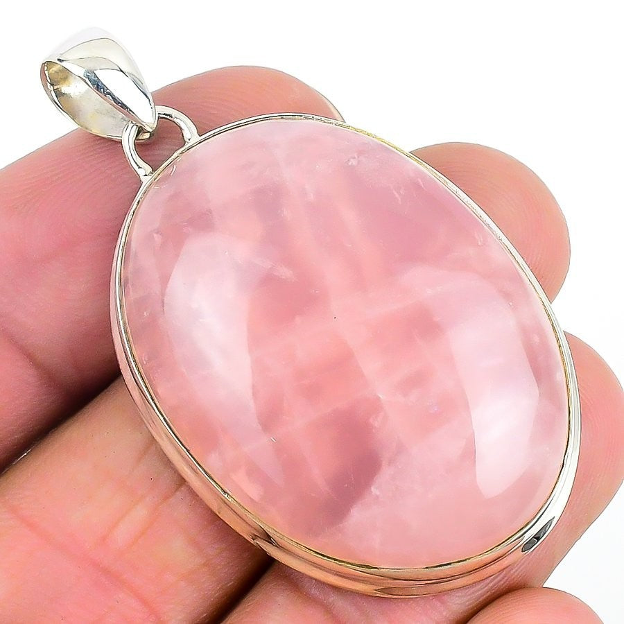 Natural Rose Quartz Sterling Silver Wedding Channel Set Ethnic Pendant Jewelry