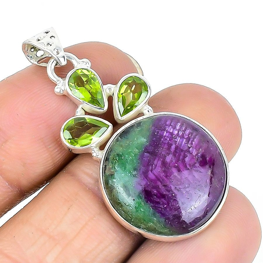 Natural Ruby Zosite 925 Solid Silver Birthday Sisters Gift Wedding Boho Pendant