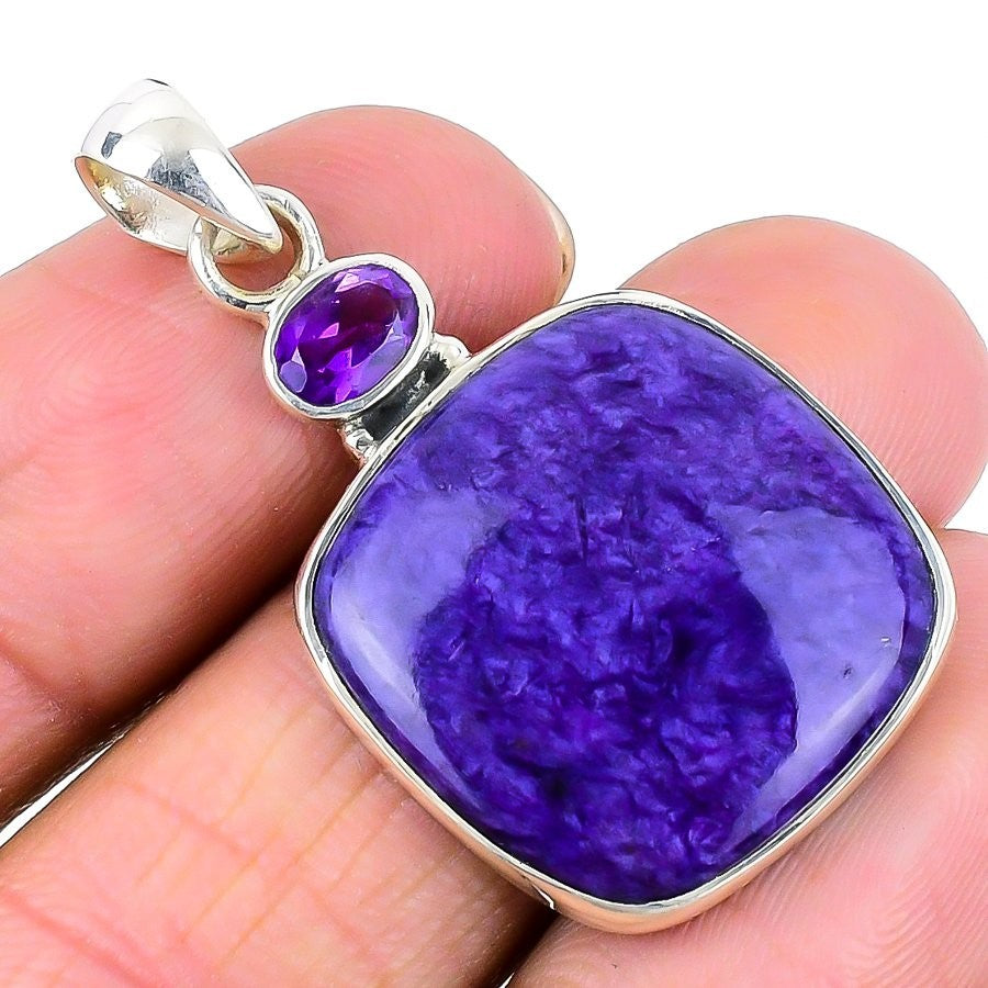 Natural Russian Charoite 925 Solid Silver Handcrafted Anniversary Mother Pendant