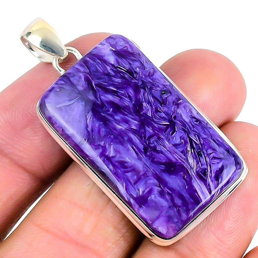 Natural Russian Charoite 925 Sterling Silver Sisters Day Ethnic Pendant Jewelry