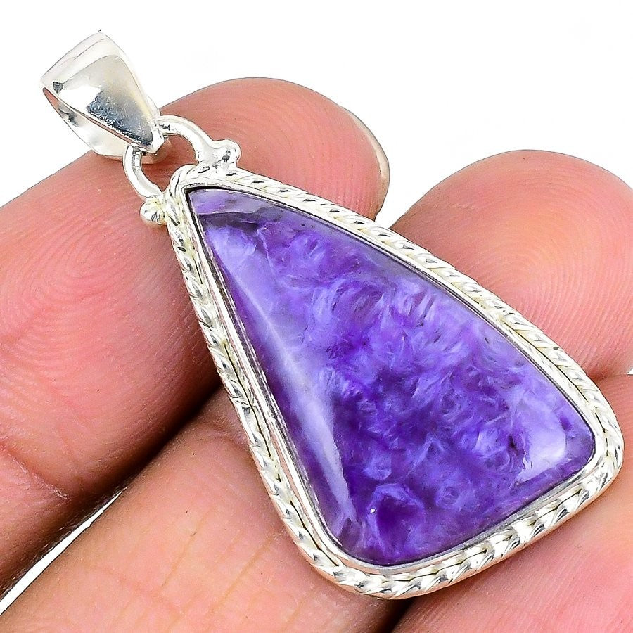 Natural Russian Charoite Ethnic Bezel Daughters Day Wife Pendant Sterling Silver