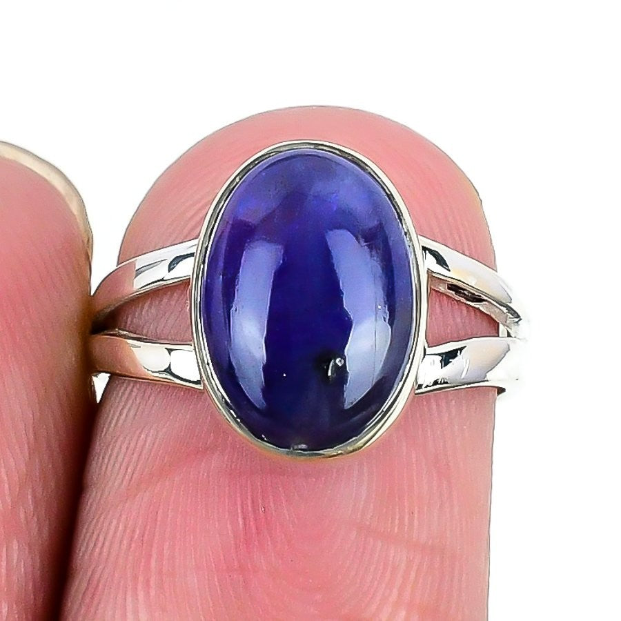 Natural Russian Charoite Solid Silver Engagement Statement Ring Jewelry Size 6