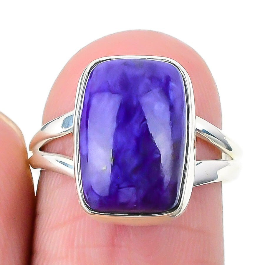 Natural Russian Charoite Wedding Wife Mothers day Cluster Ring Size 7 925 Silver