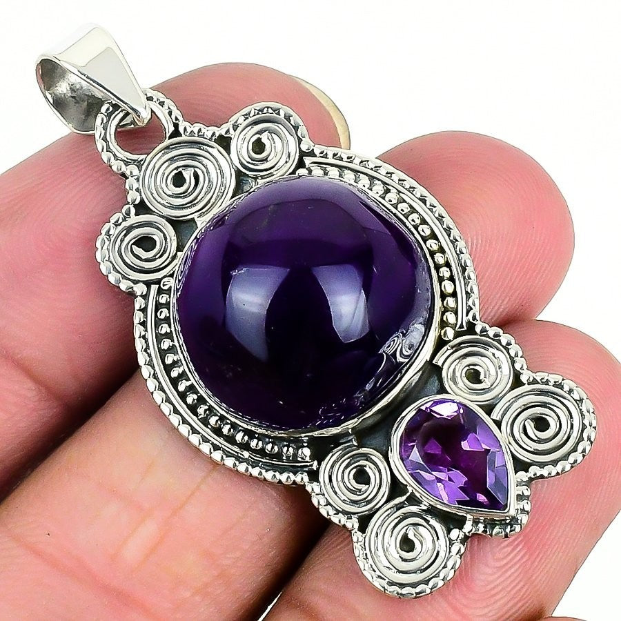 Natural Sage Amethyst 925 Silver Anniversary Crown Chakra New Pendant Jewelry