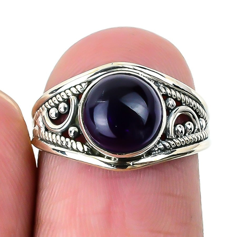Natural Sage Amethyst 925 Solid Silver Trendy Wife Cluster Ring Jewelry Size 6.5