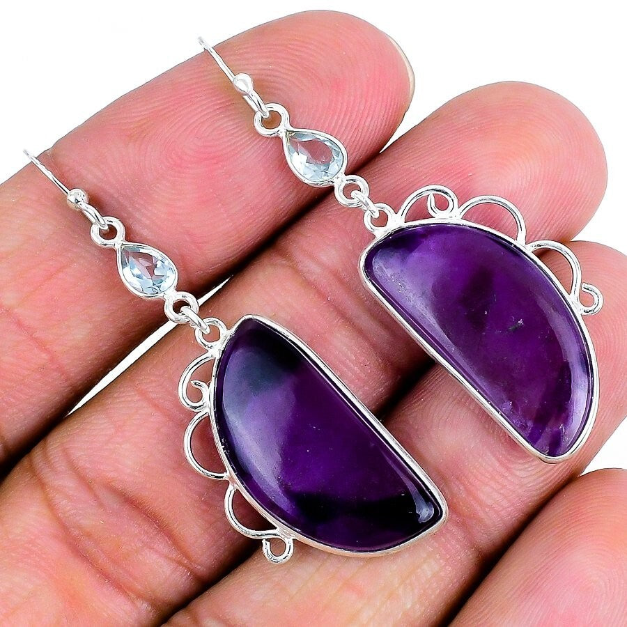 Natural Sage Amethyst 925 Sterling Silver Sister New Drop Dangle Ethnic Earrings