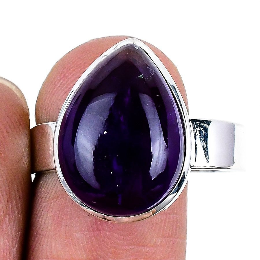 Natural Sage Amethyst Bezel Mother Statement Ring Jewelry Size 12.5 925 Silver