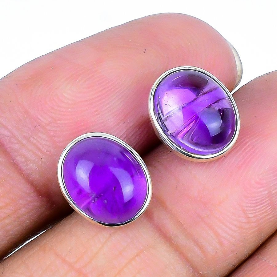 Natural Sage Amethyst Solid Silver Daughters Day Stud Post New Earrings Jewelry