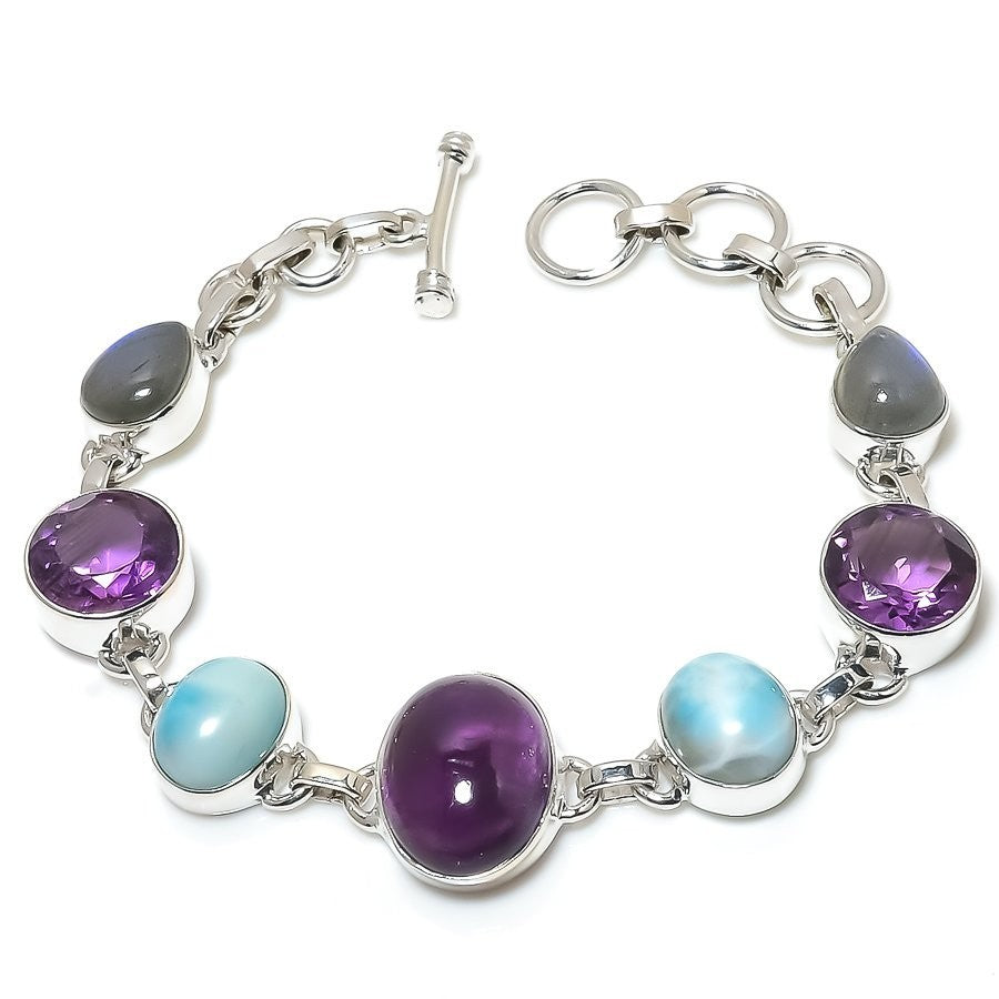 Natural Sage Amethyst Sterling Silver Artisan Sisters Day Chain Boho Bracelet