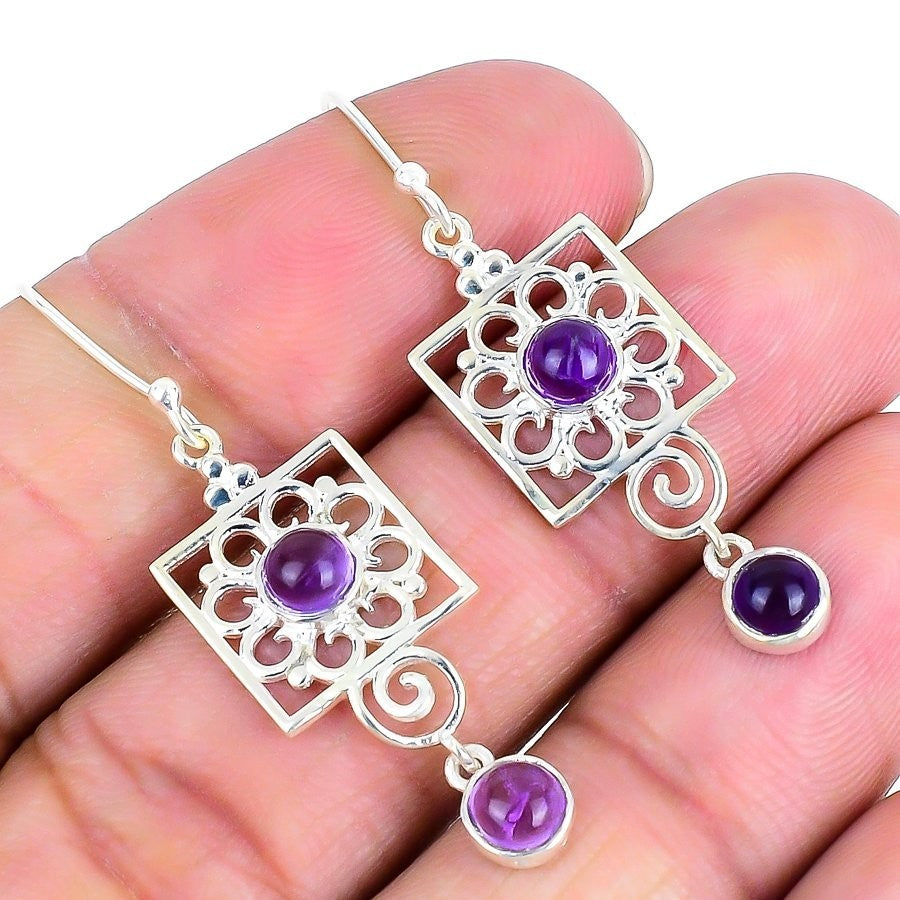 Natural Sage Amethyst Sterling Silver Drop Dangle Best Daughters Gift Earrings