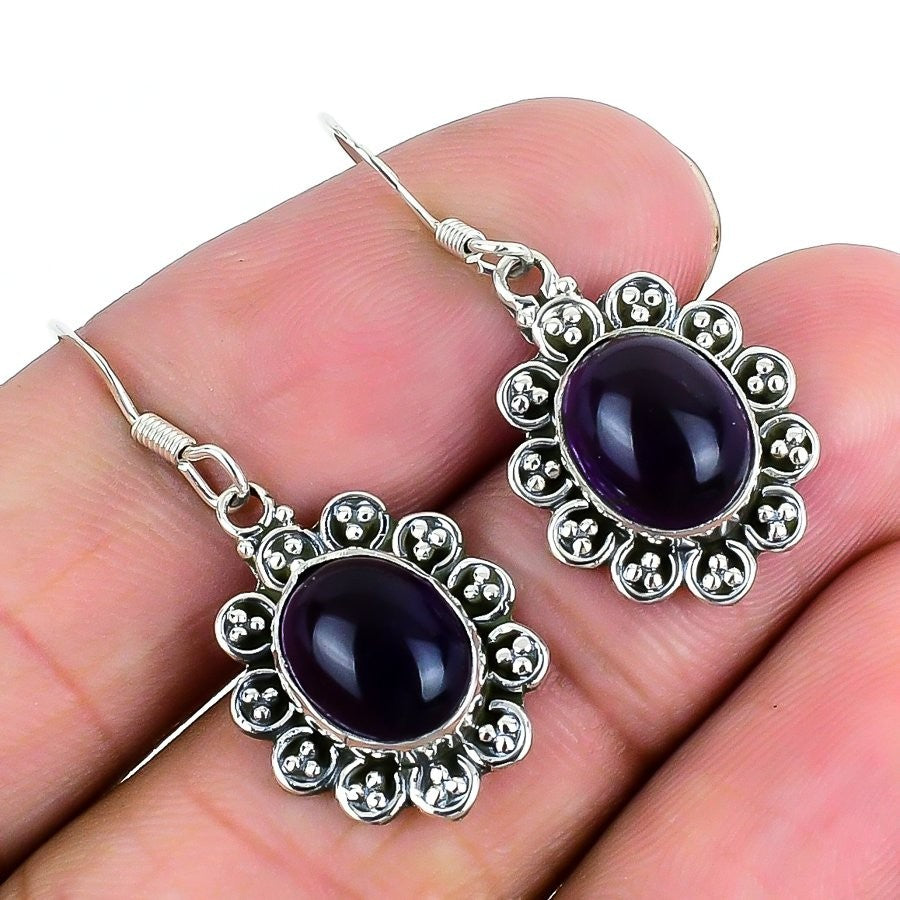 Natural Sage Amethyst Sterling Silver Drop Dangle Bezel Sisters Gift Earrings