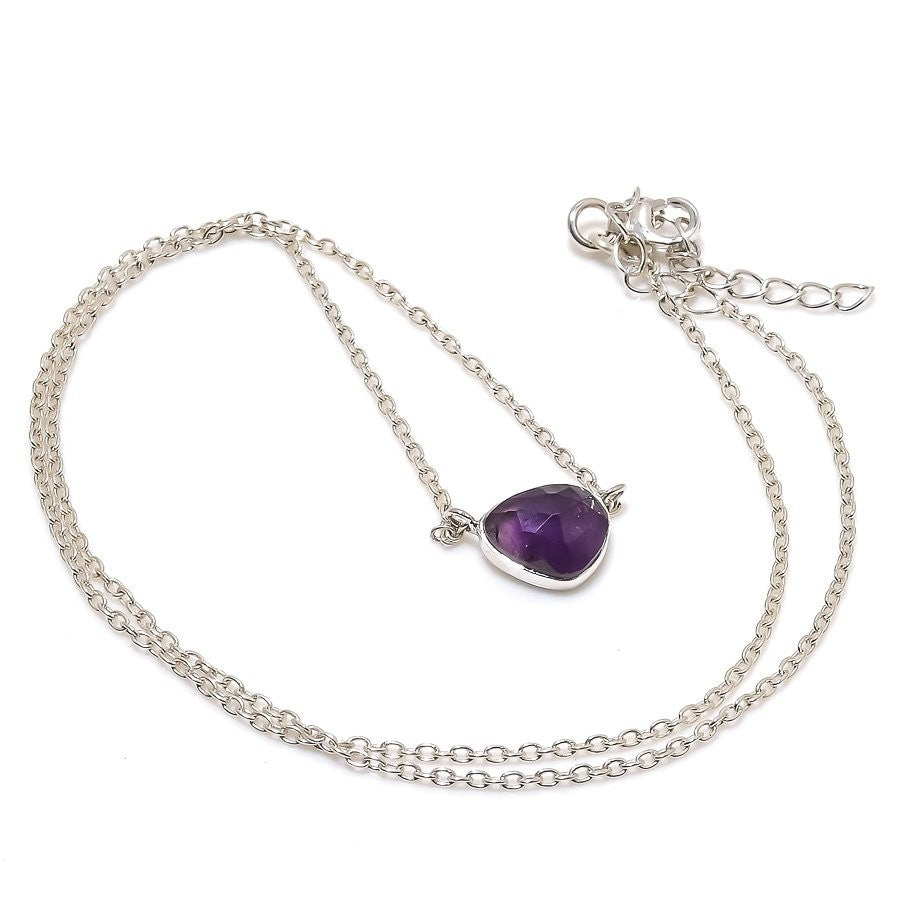 Natural Sage Amethyst Sterling Silver Engagement Handmade Chain Necklace Jewelry