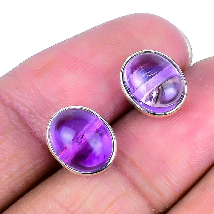Natural Sage Amethyst Stud Post Daughter New Earrings Jewelry 925 Solid Silver