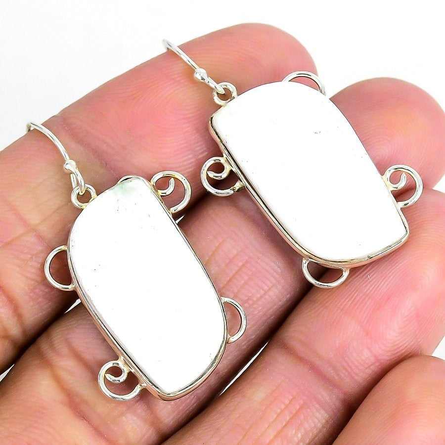 Natural Scolecite Solid Sterling Silver Channel Set Dangle Hook Earrings Jewelry