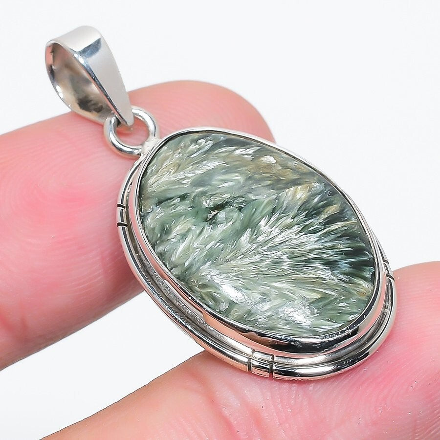 Natural Seraphanite 925 Silver Handmade Sister Engagement Anniversary Pendant