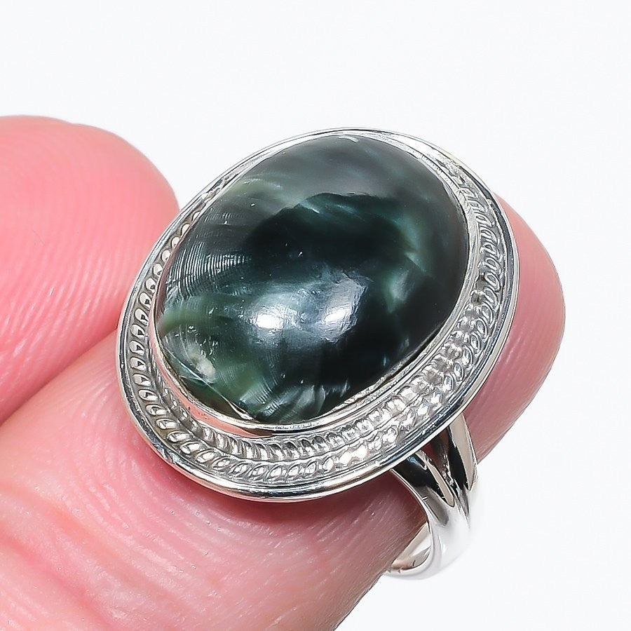 Natural Seraphanite 925 Silver Mother Boho Statement Daughters Day Ring Size 7.5