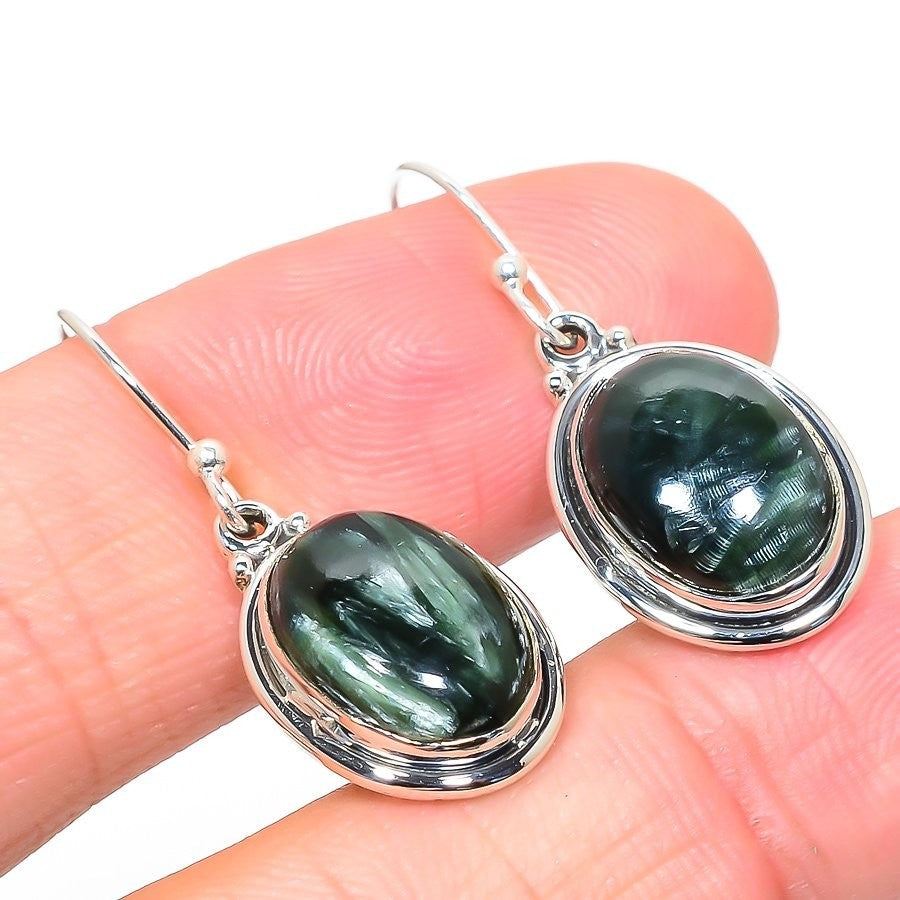 Natural Seraphanite Sterling Silver Drop Dangle Wedding Hook Earrings Jewelry