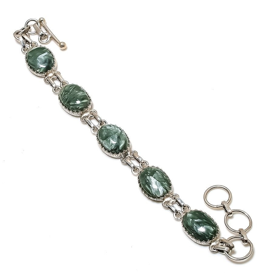 Natural Seraphinite 925 Silver Birthday Unique Chain Bezel Wife Artisan Bracelet