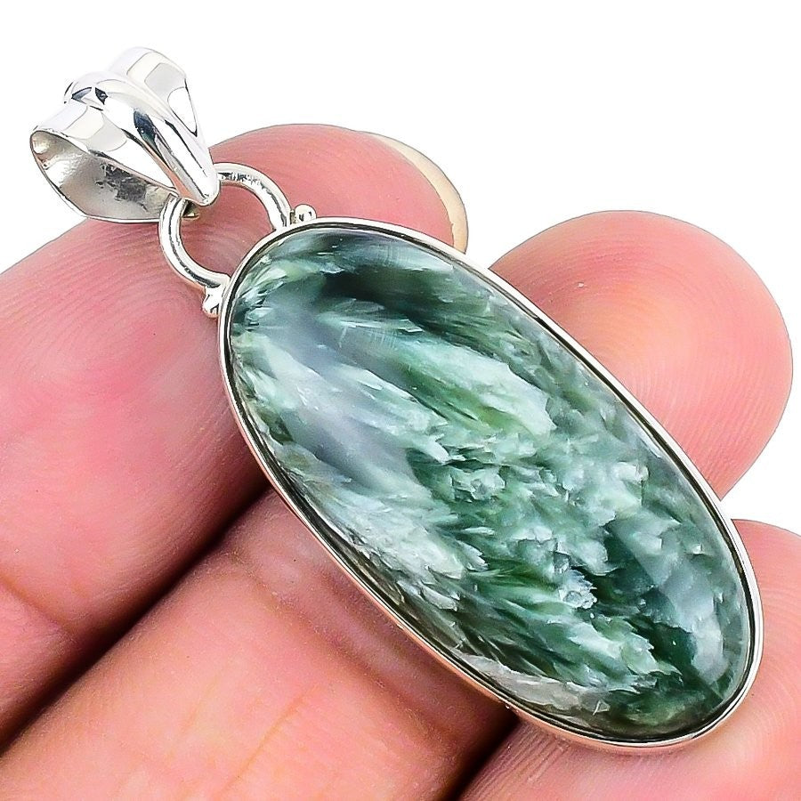 Natural Seraphinite 925 Sterling Silver Bezel Daughter Friendship Day Pendant