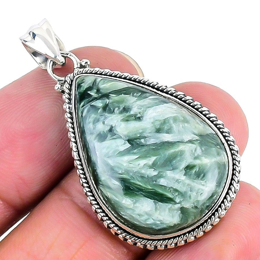 Natural Seraphinite Solid Silver Wedding Sisters Day Unique Wife Pendant Jewelry