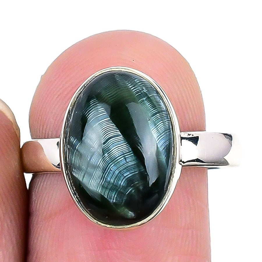 Natural Seraphinite Solid Silver Wife Statement Bezel Daughter Gift Ring US 8.5