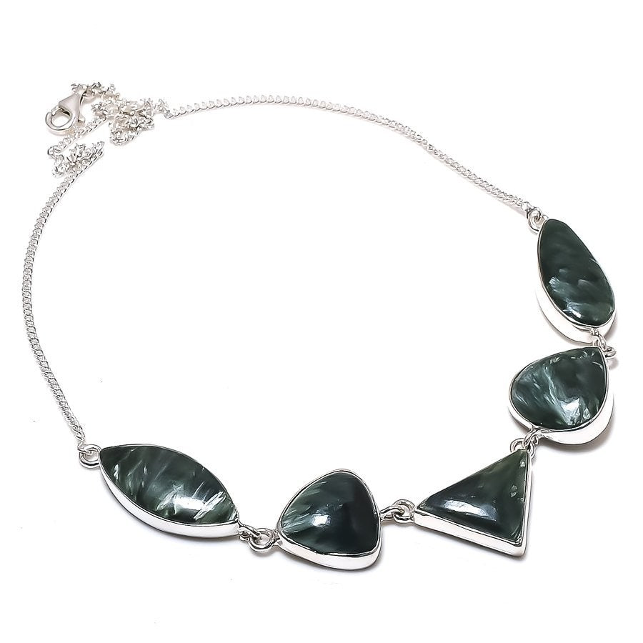 Elegant Natural Seraphinite Solid Sterling Silver Handcrafte