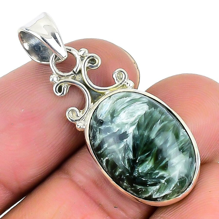 Natural Seraphinite Sterling Silver Handcrafted Sister Trendy Engagement Pendant