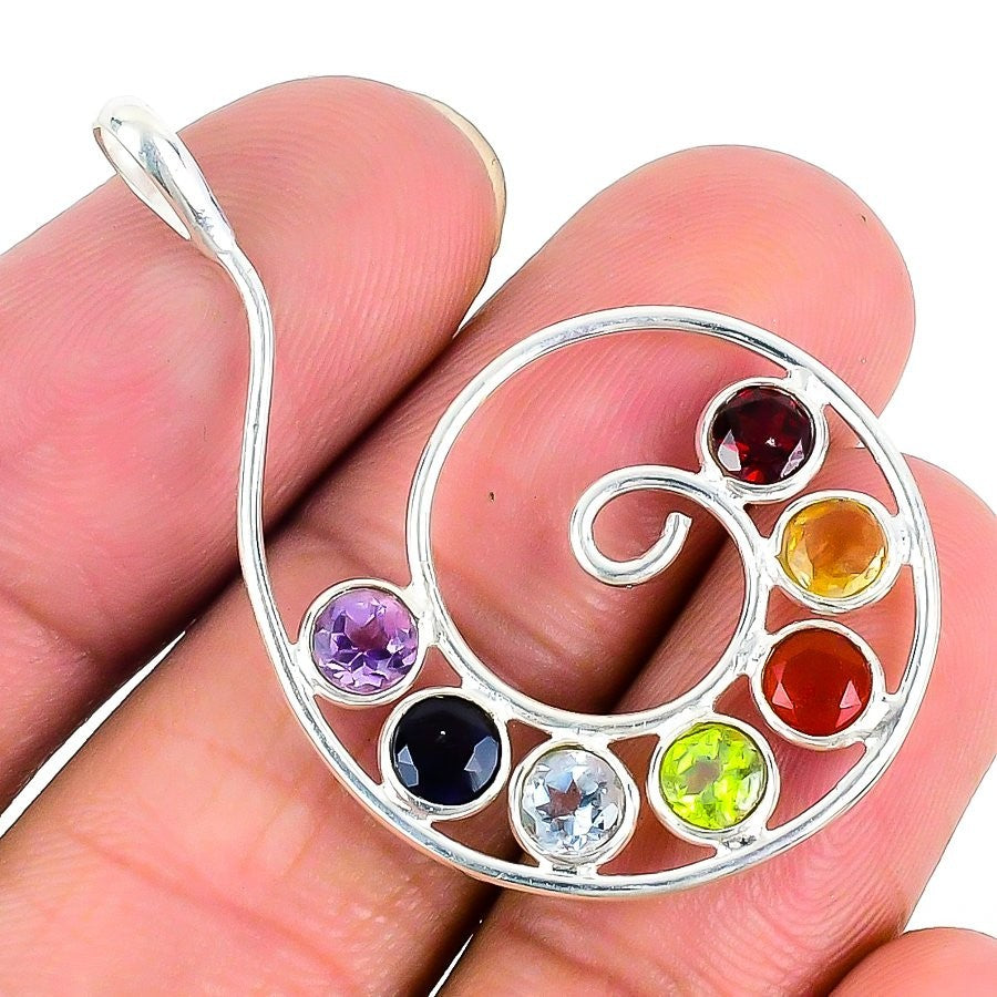 Natural Seven Chakra 925 Solid Silver Birthday Wife Unique Boho Pendant Jewelry