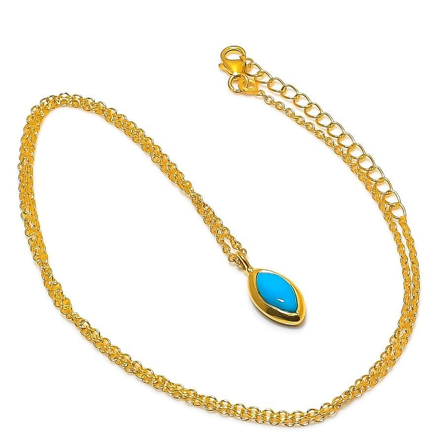 Natural Sleeping Turquoise Solid Sterling Silver Wife Chain Mothers day Necklace