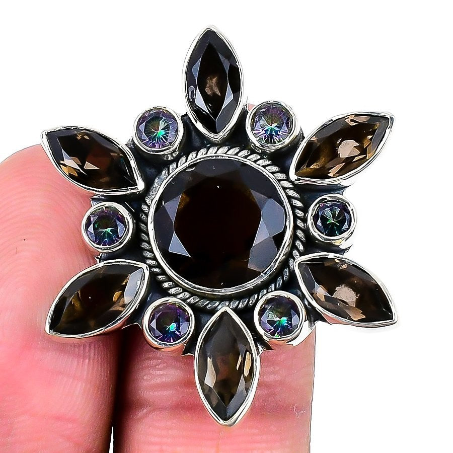 Natural Smoky Topaz 925 Silver Daughters Day Sister Statement Boho Ring Jewelry