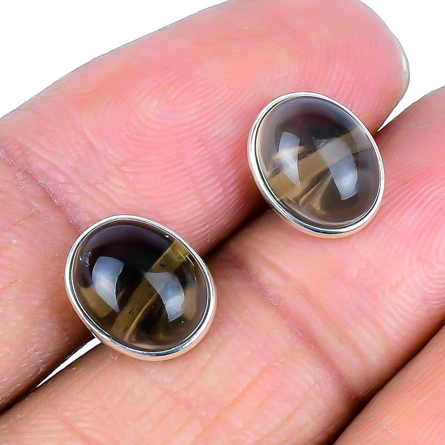 Elegant Natural Smoky Topaz 925 Solid Silver Stud in 925 Ste