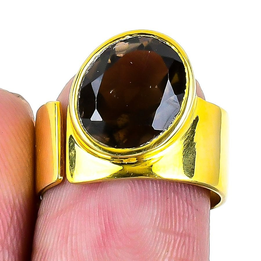 Natural Smoky Topaz 925 Sterling Silver Friendship Day Statement Ring Jewelry