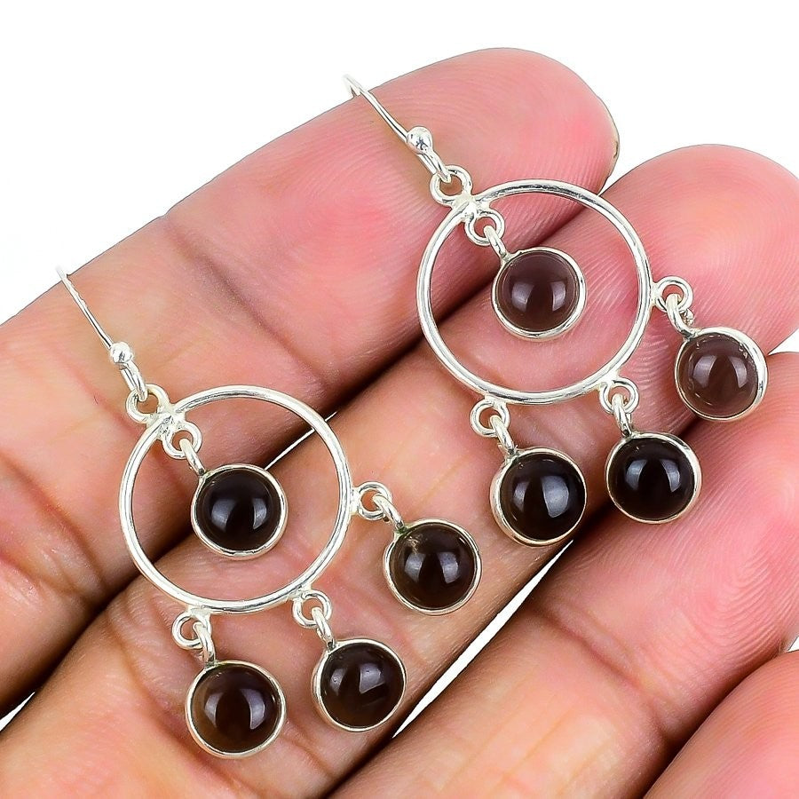 Natural Smoky Topaz 925 Sterling Silver Wife Bezel Drop Wedding Earrings Jewelry