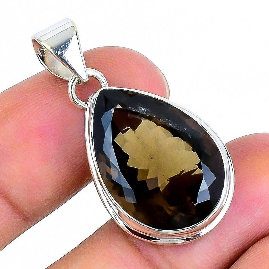 Natural Smoky Topaz Solid Sterling Silver Channel Set Engagement Pendant Jewelry