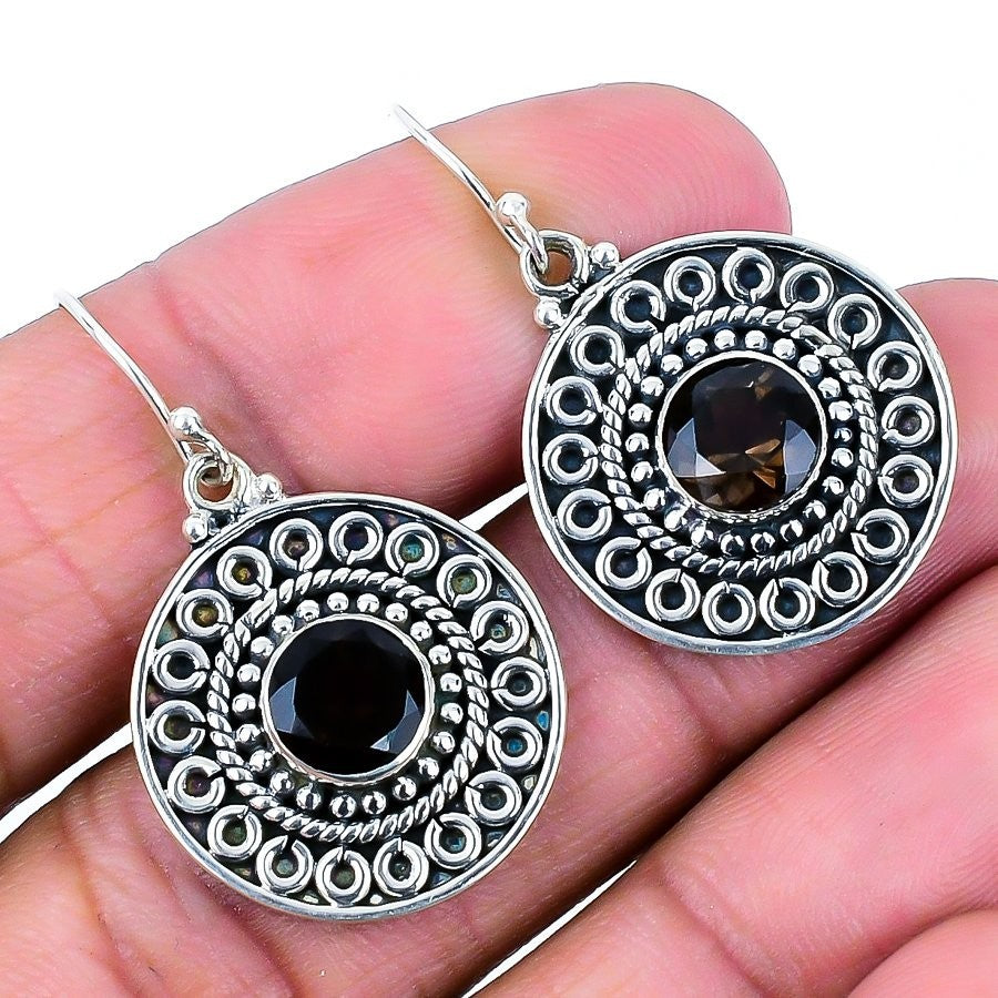 Natural Smoky Topaz Sterling Silver Dangling Hook Wedding Boho Earrings Jewelry