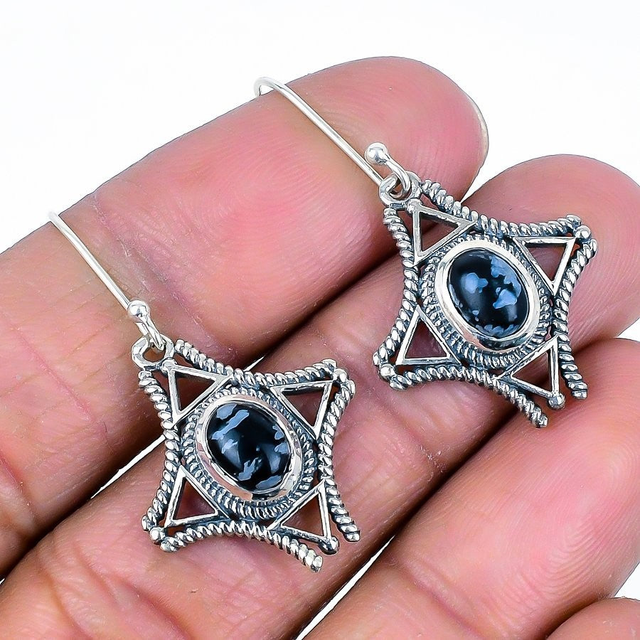 Natural Snowflake Obsidian Solid Sterling Silver Drop Dangle Earrings Jewelry