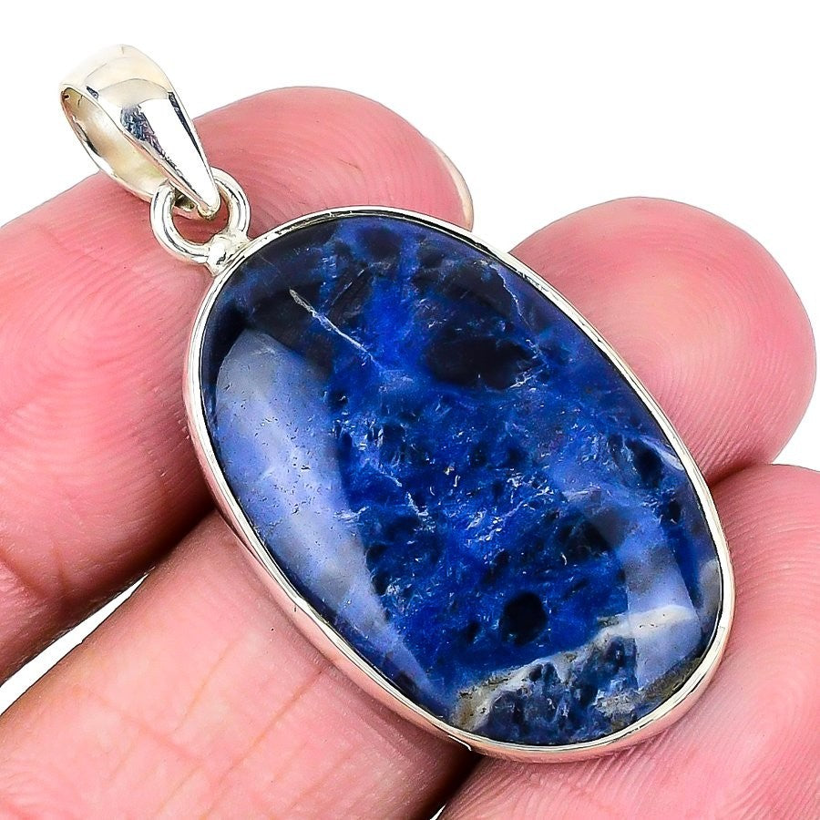 Natural Sodalite 925 Solid Silver Third Eye Chakra Best Daughters Gift Pendant