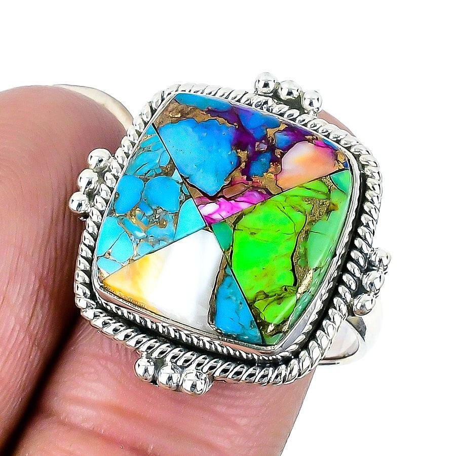 Natural Spiny Oyster Matrix Solid Silver Anniversary Statement Ring Jewelry US 9