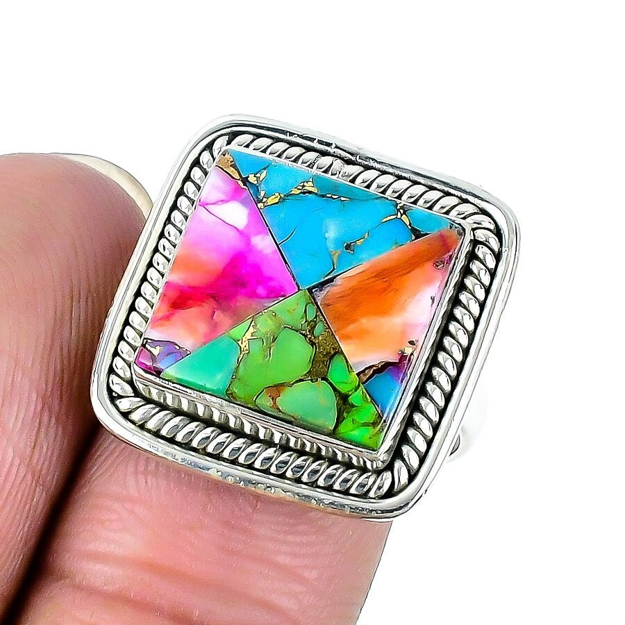 Natural Spiny Oyster Matrix Sterling Silver Statement Birthday Ring Jewelry US 8