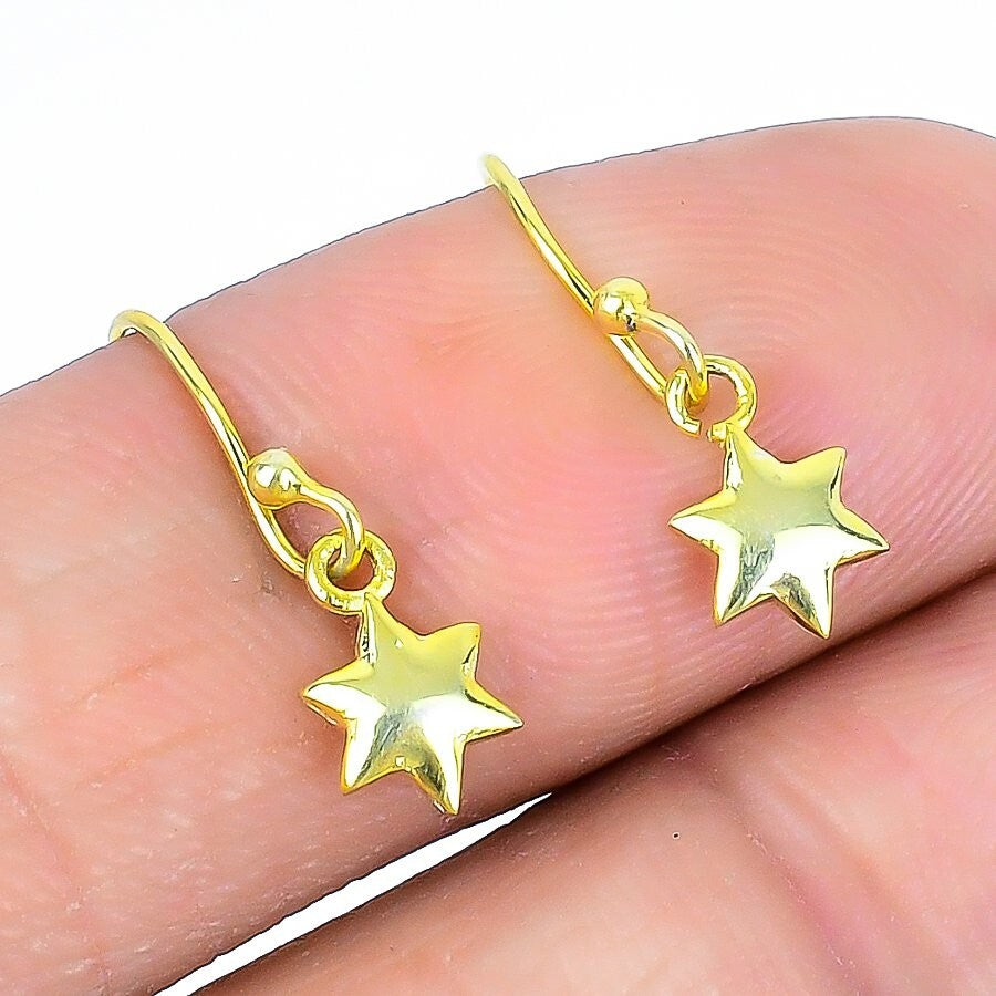 Natural Star Look Gold Solid Silver Daughter Drop Dangle Hook Birthday Earrings