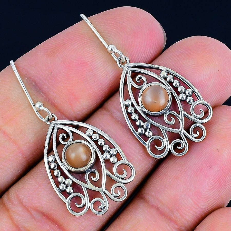 Natural Sunstone 925 Silver Engagement Art Deco Bezel Dangle Wedding Earrings
