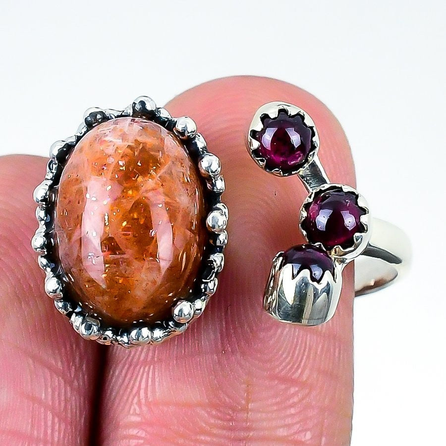 Natural Sunstone Daughters Day Promise Sister Band Ring Jewelry 925 Solid Silver