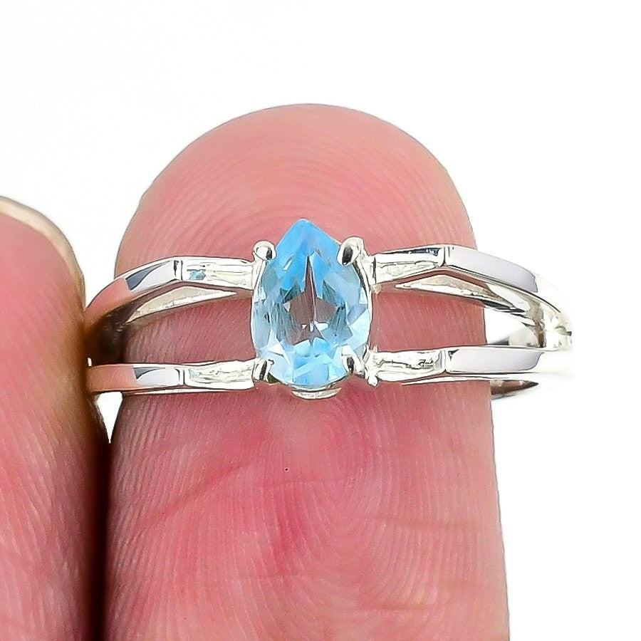 Natural Swiss Blue Topaz 925 Silver Mother Statement Birthday Ethnic Ring Size 8