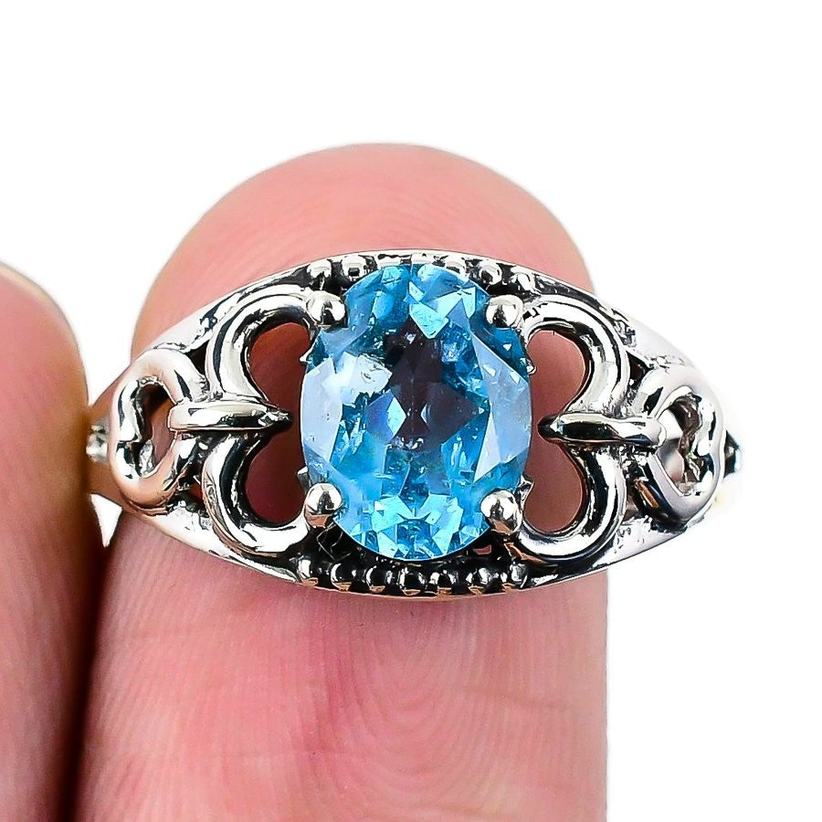 Natural Swiss Blue Topaz 925 Solid Silver Statement Trendy Ring Jewelry Size 8.5