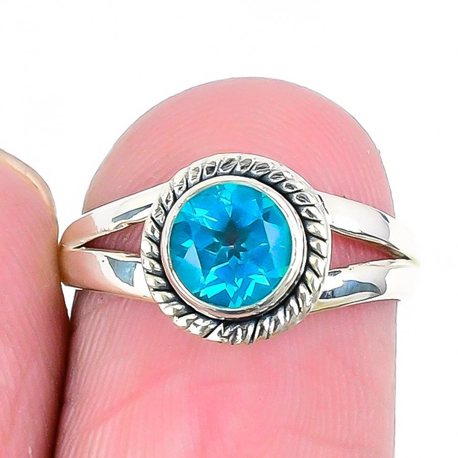Natural Swiss Blue Topaz 925 Sterling Silver Cluster Artisan Ring Jewelry Size 6